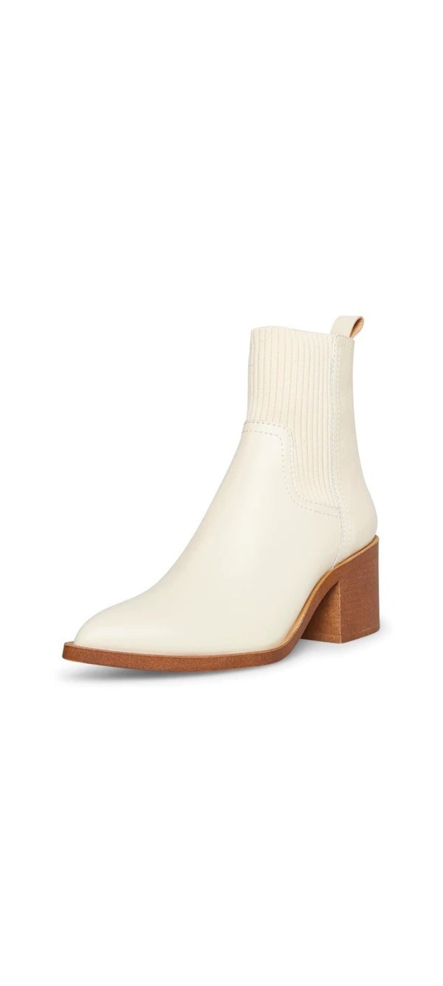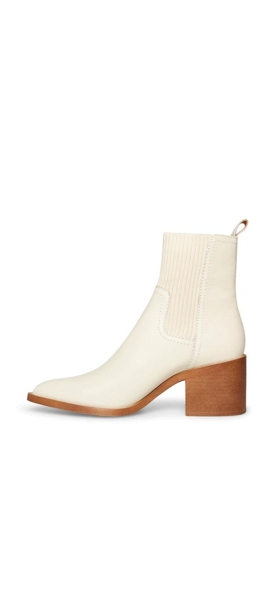 Steve Madden Abriel Bone White Leather Pointed Toe Pull On Western Ankle Booties