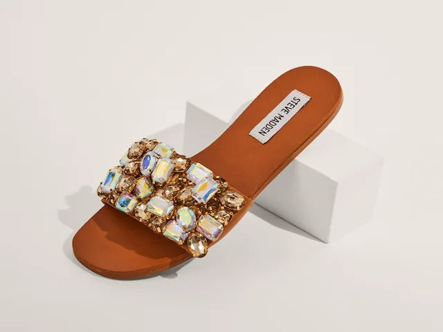 Steve Madden Brionna Jeweled Rhinestone Open Toe Flat Slide Mule Sandals
