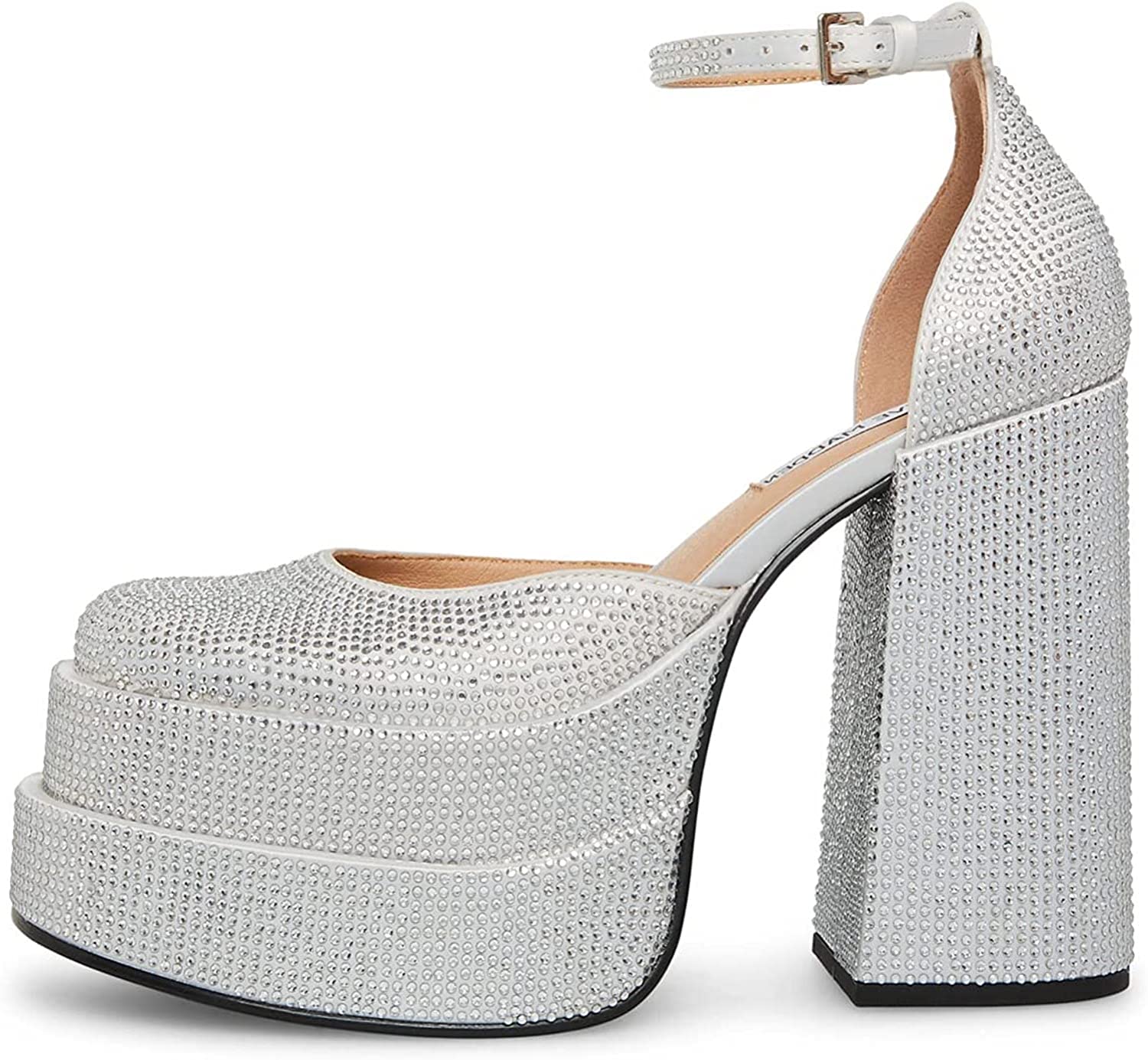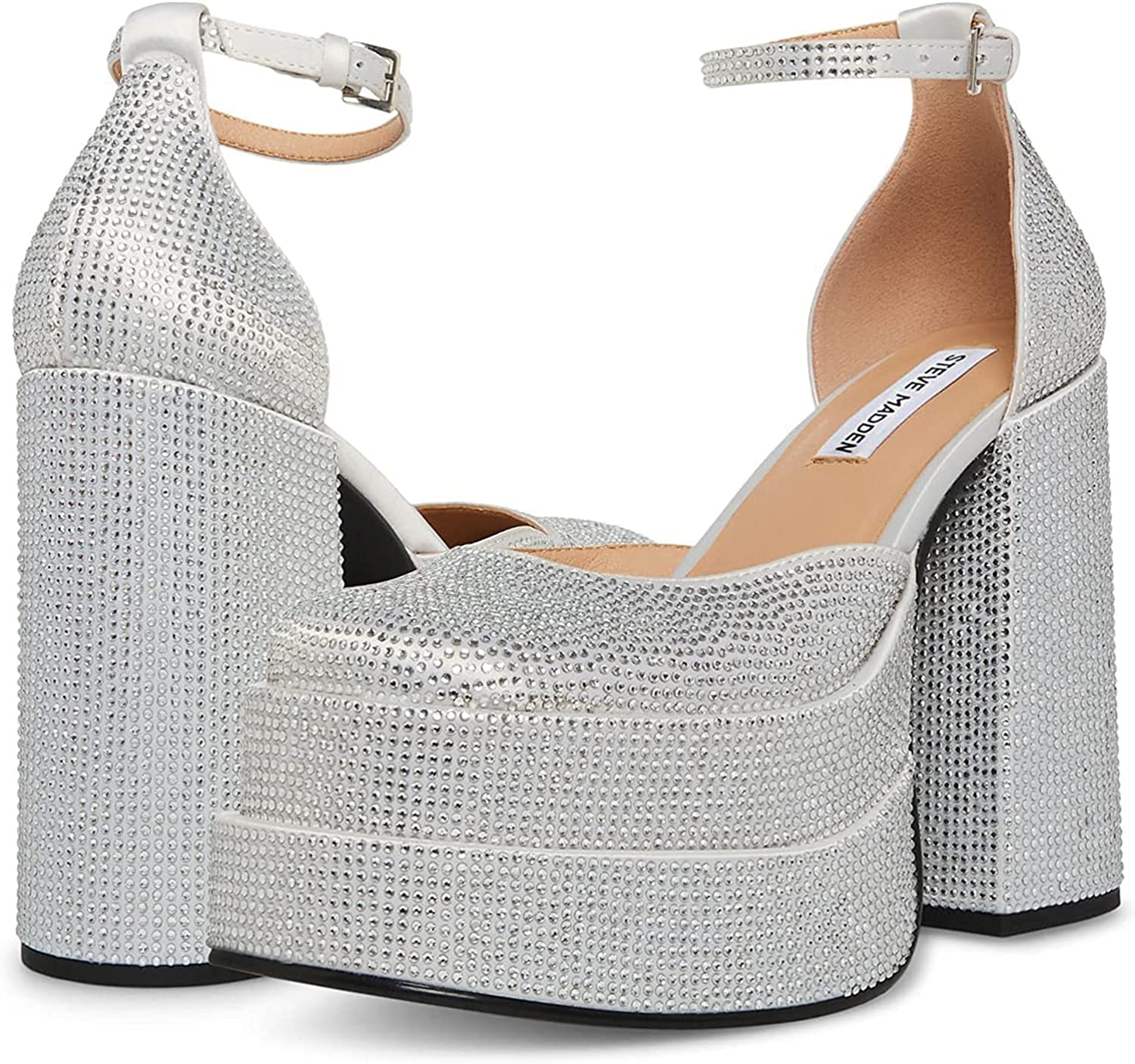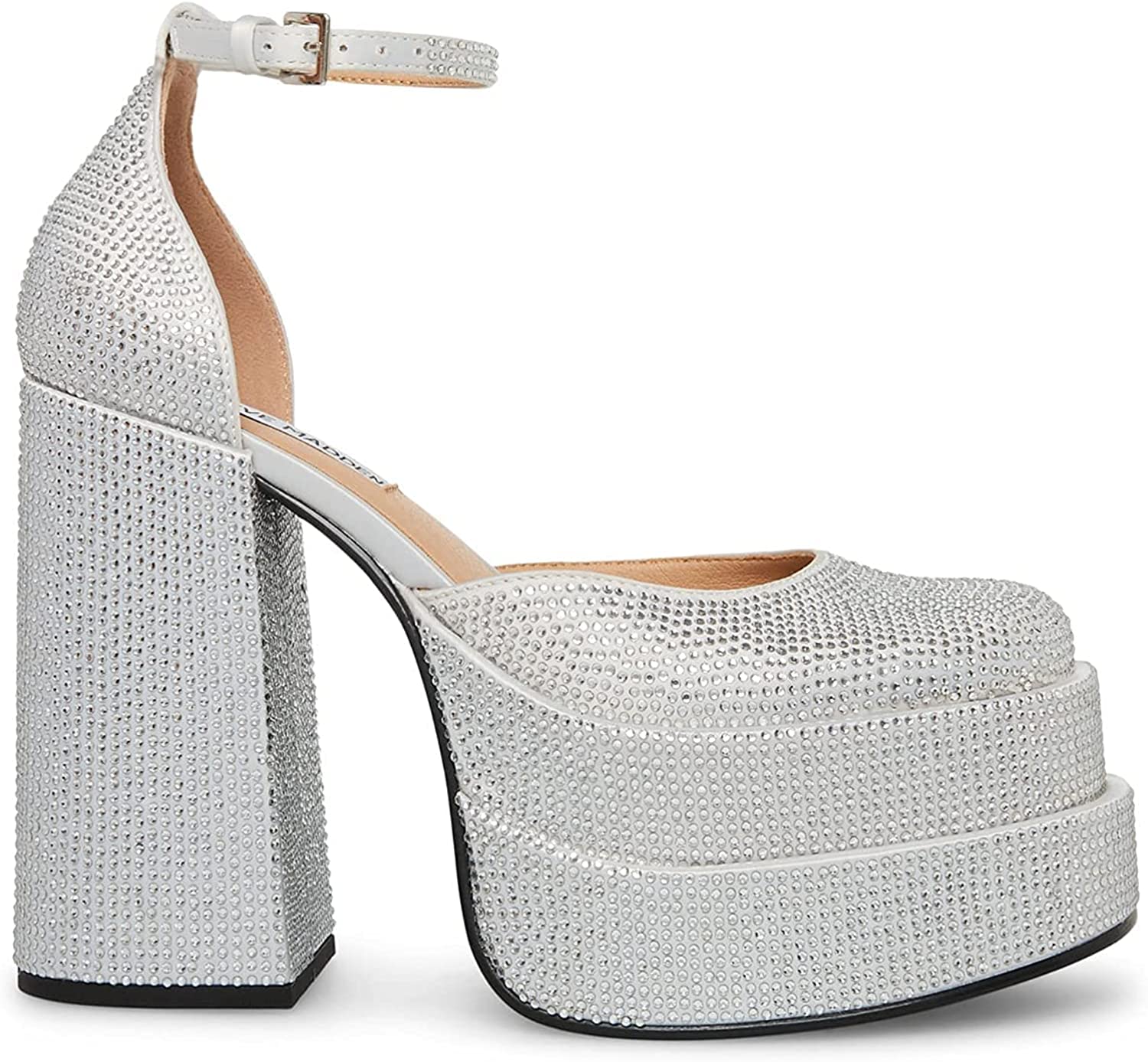 Steve Madden Charlize Rhinestone Block Heel Ankle Strap Square Toe Fashion Pumps