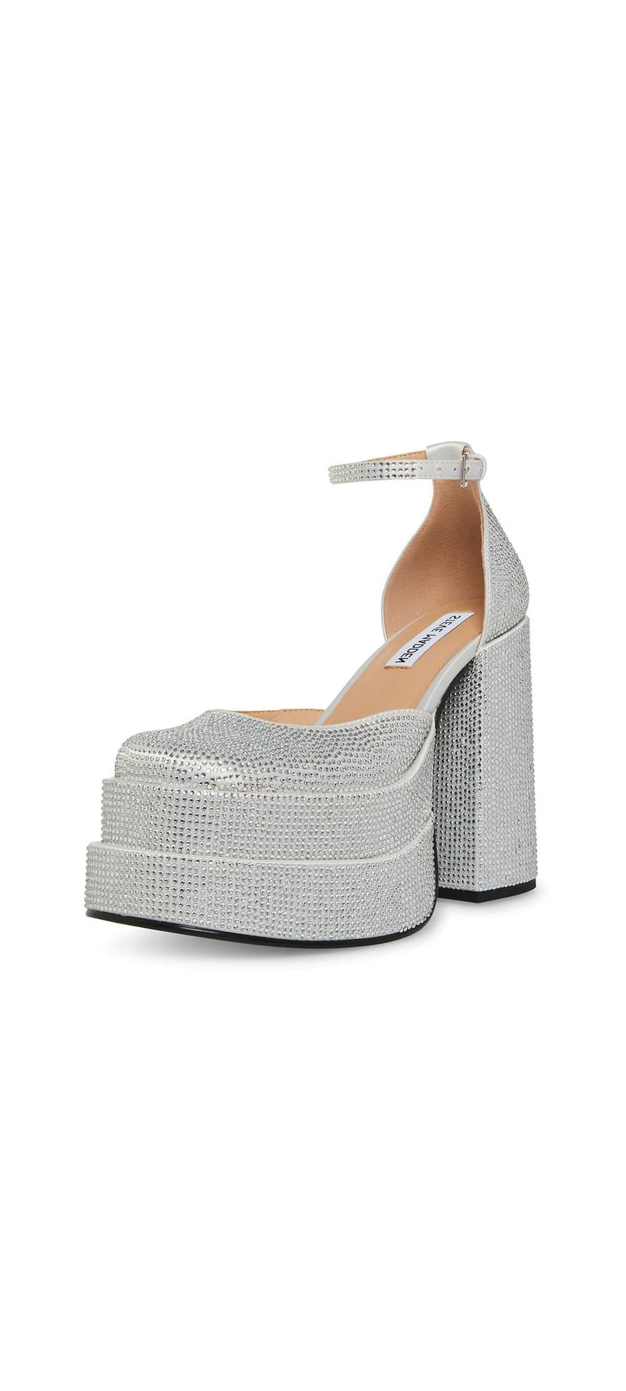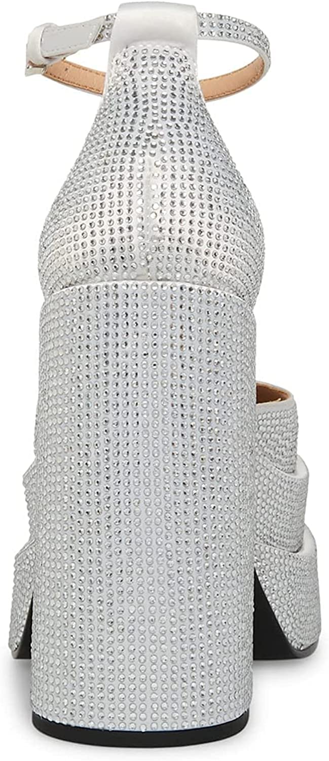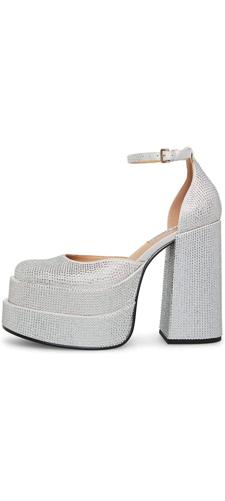 Steve Madden Charlize Rhinestone Block Heel Ankle Strap Square Toe Fashion Pumps