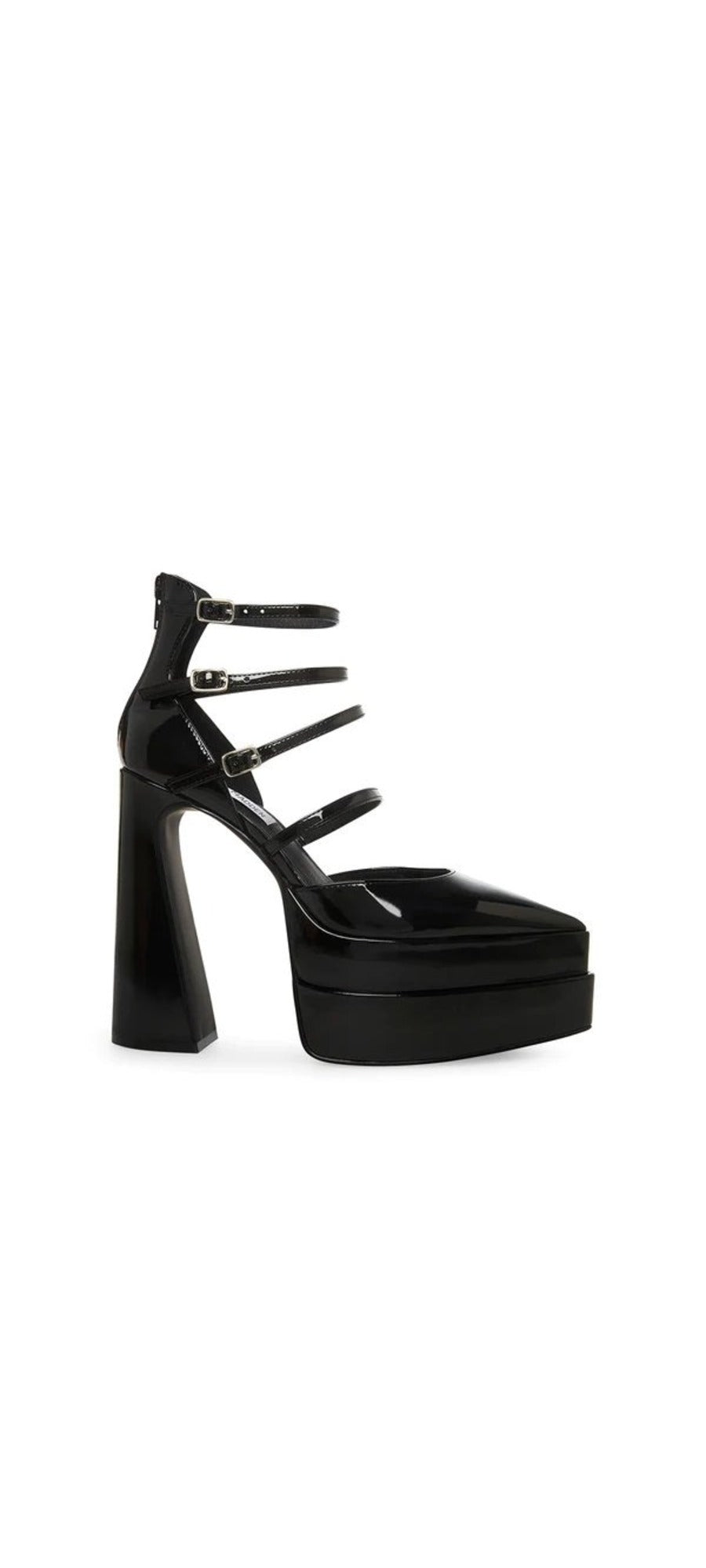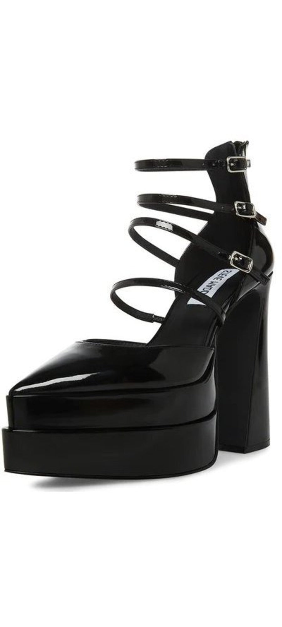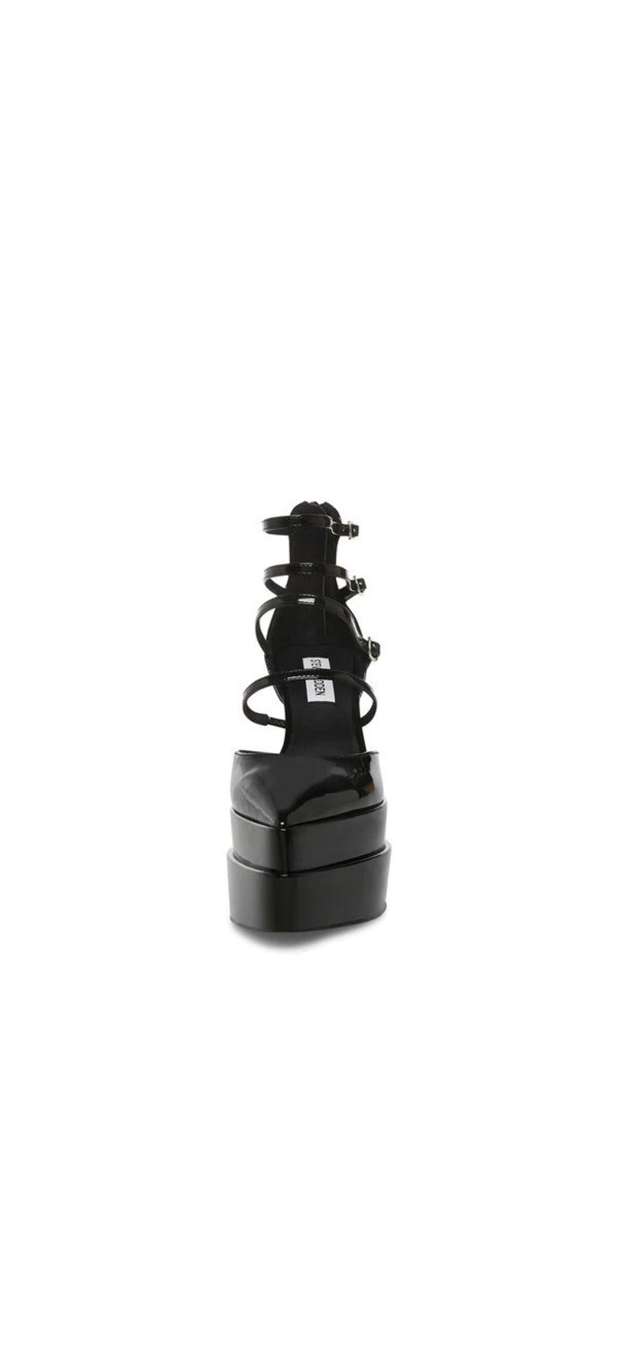 Steve Madden Clara Black Patent Buckle Straps Back Zipper Pointed Toe Pumps