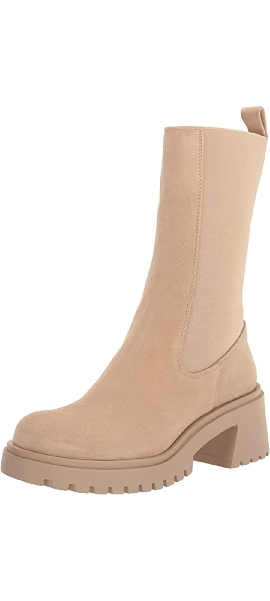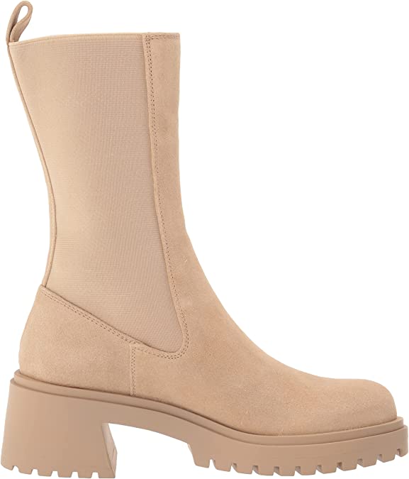 Steve Madden Hesitant Sand Suede Block Heel Pull On Mid Calf Fashion Moto Boots