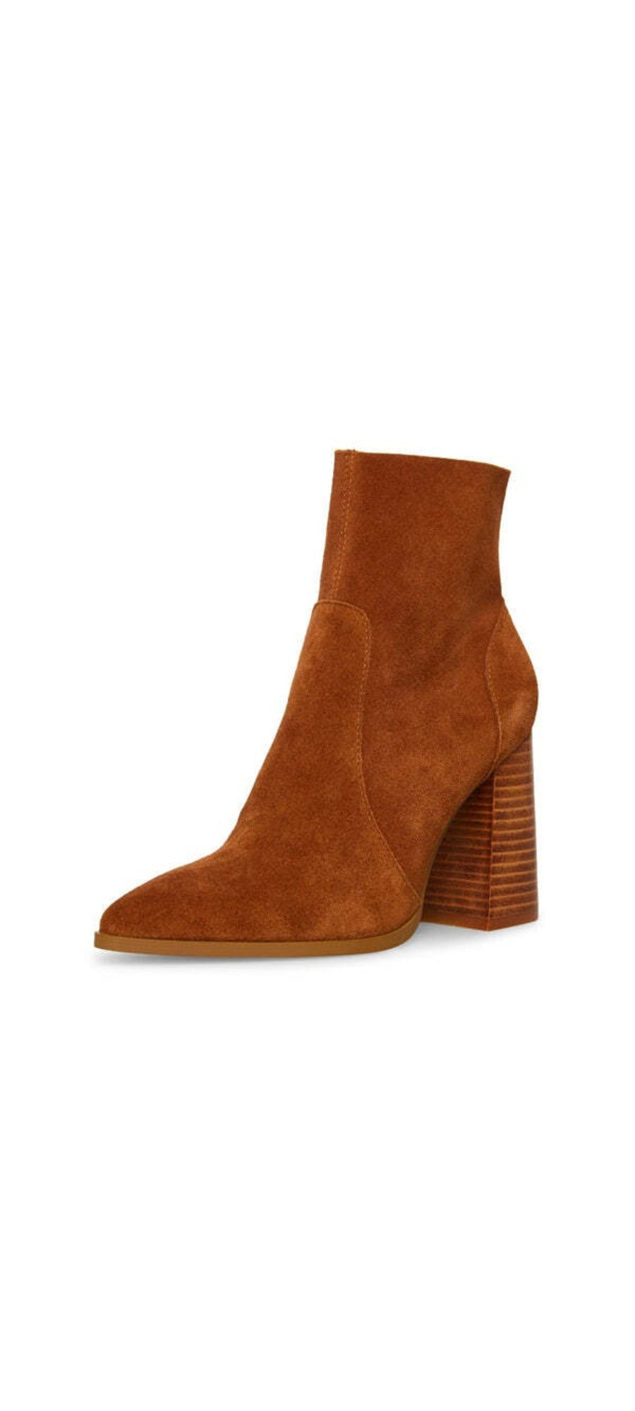 Steve Madden Julina Tan Suede Zipper Closure Pointed Toe Stacked Heel Boots