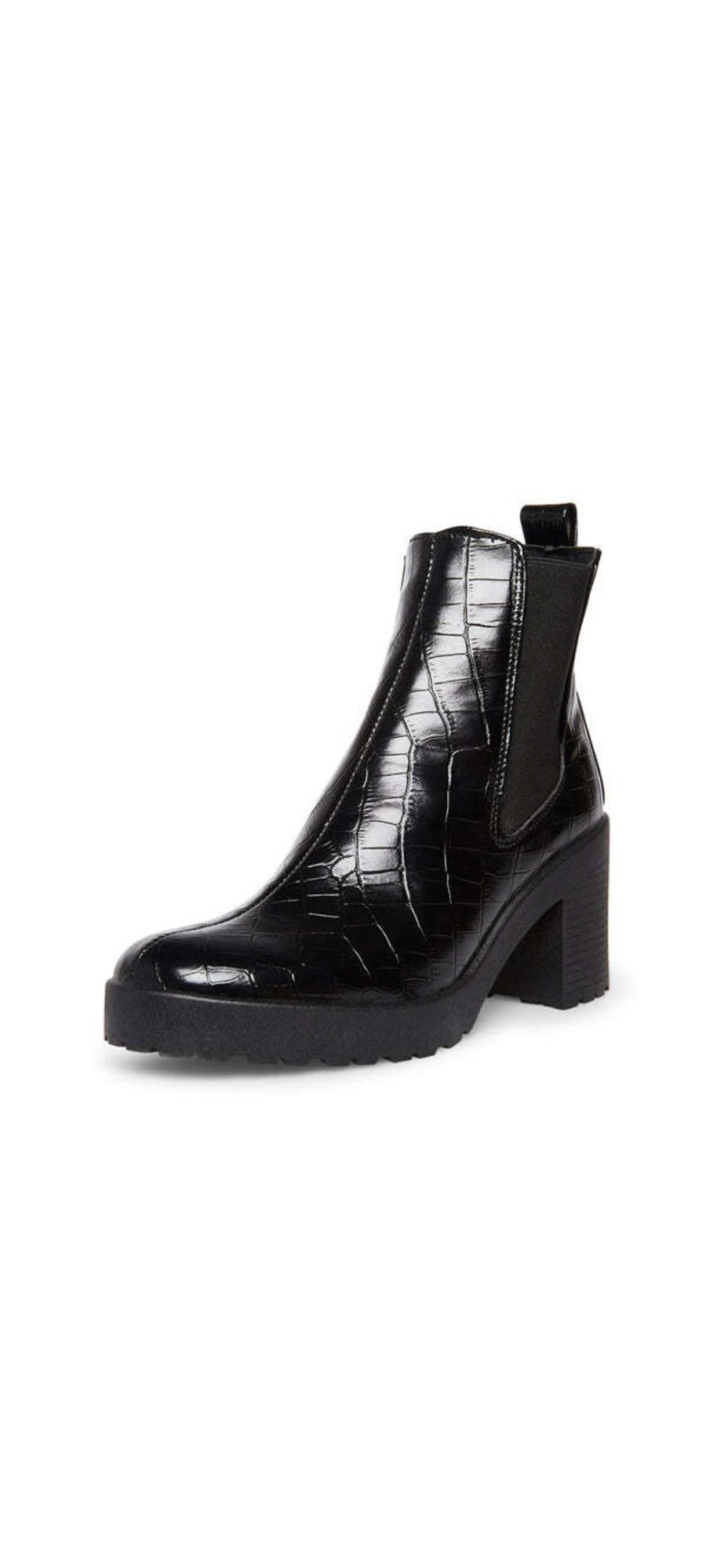 Croc-embossed texture adds luxury to the everyday comfort of this cropped Chelsea boot, also featuring elastic goring for pull-on entry and an easy-to-wear chunky heel.