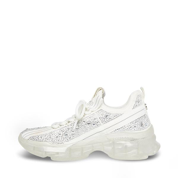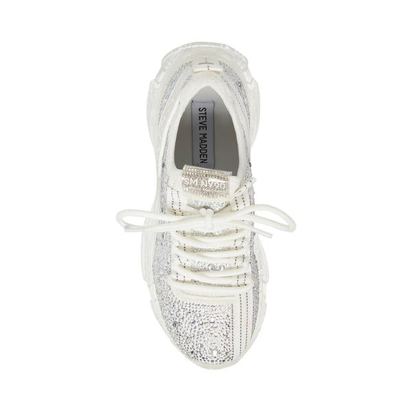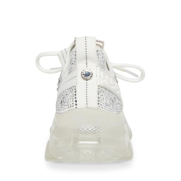 Steve Madden Maxima Lace Up Sneakers Boyfriend Chunky Platform White Multi Rhinestone