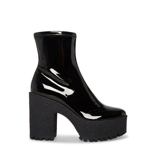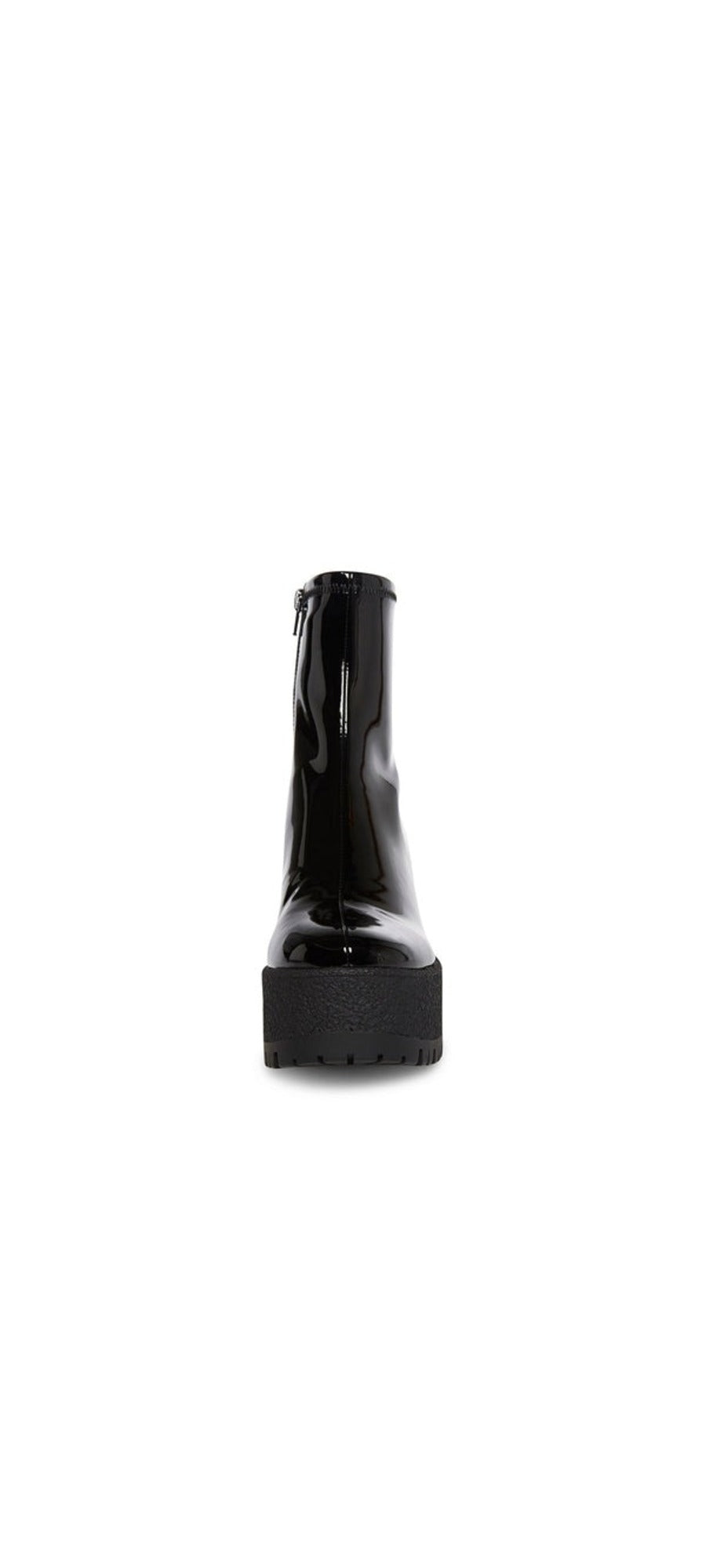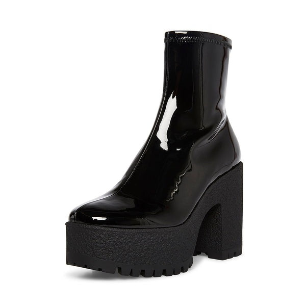 Steve Madden Outlast Black Patent Zipper Closure Sleek Rounded Toe Ankle Boots