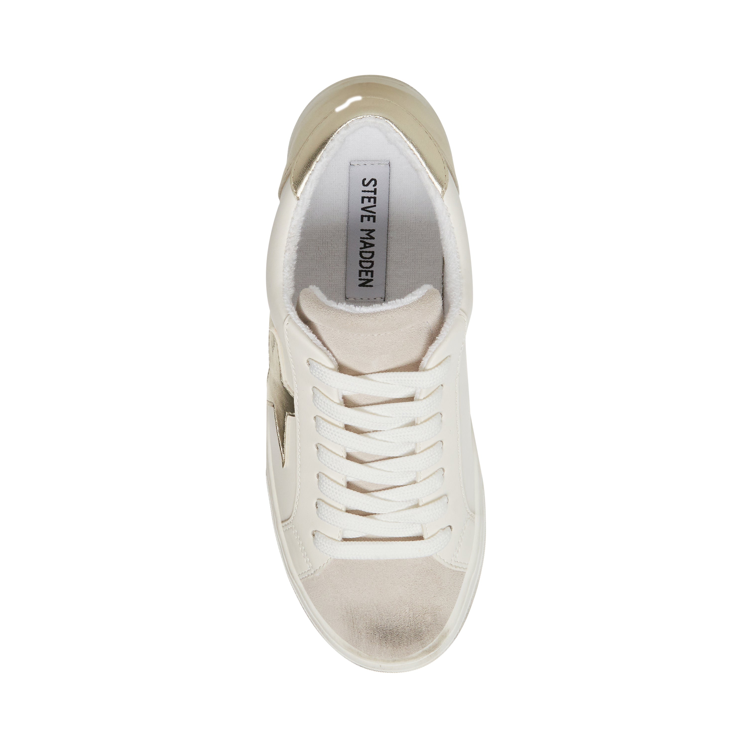 Steve Madden Rezume White/Gold Lace-Up Round Closed Toe Fashion Sneakers