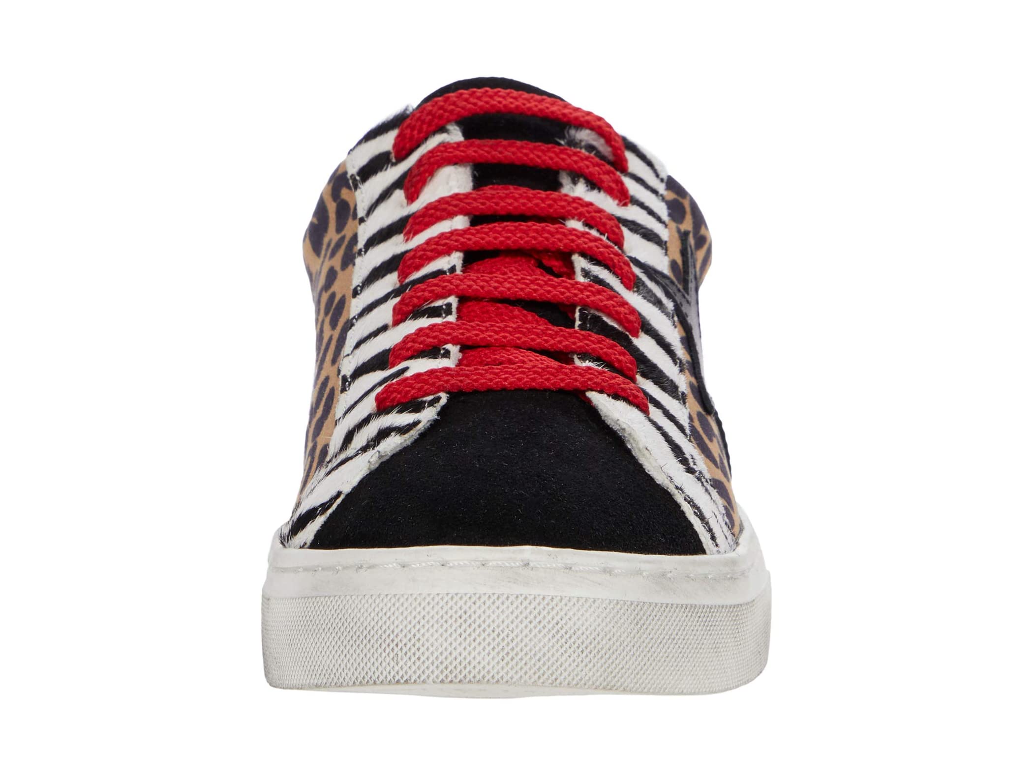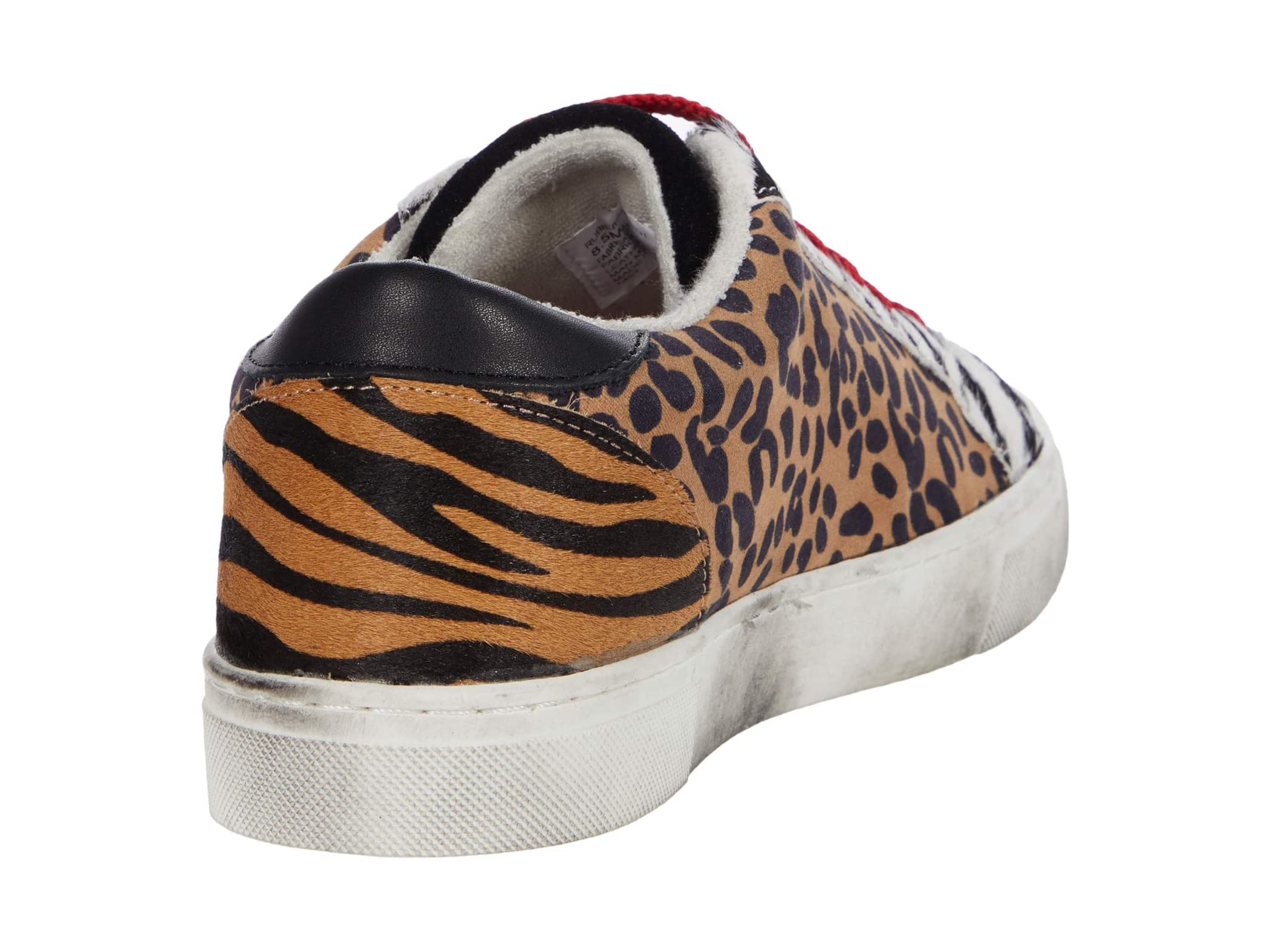 - Casual sneaker features a shimmering leather and textile upper.