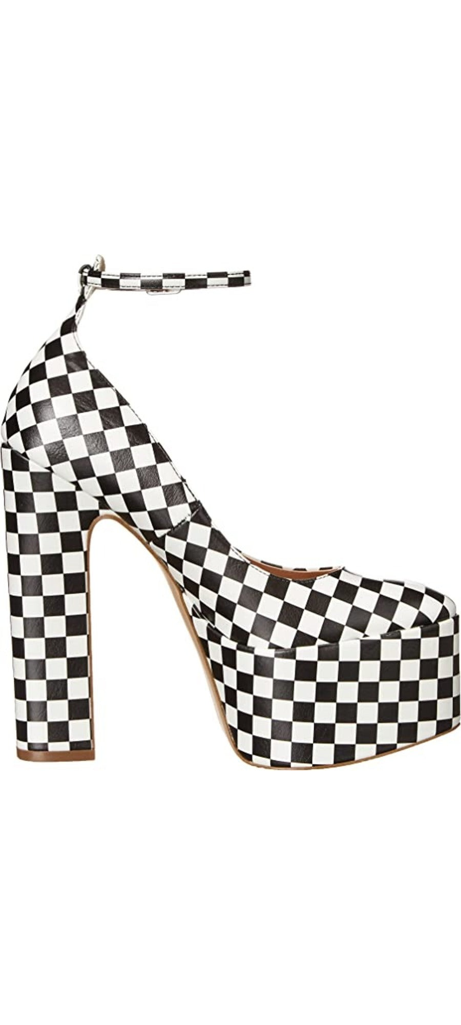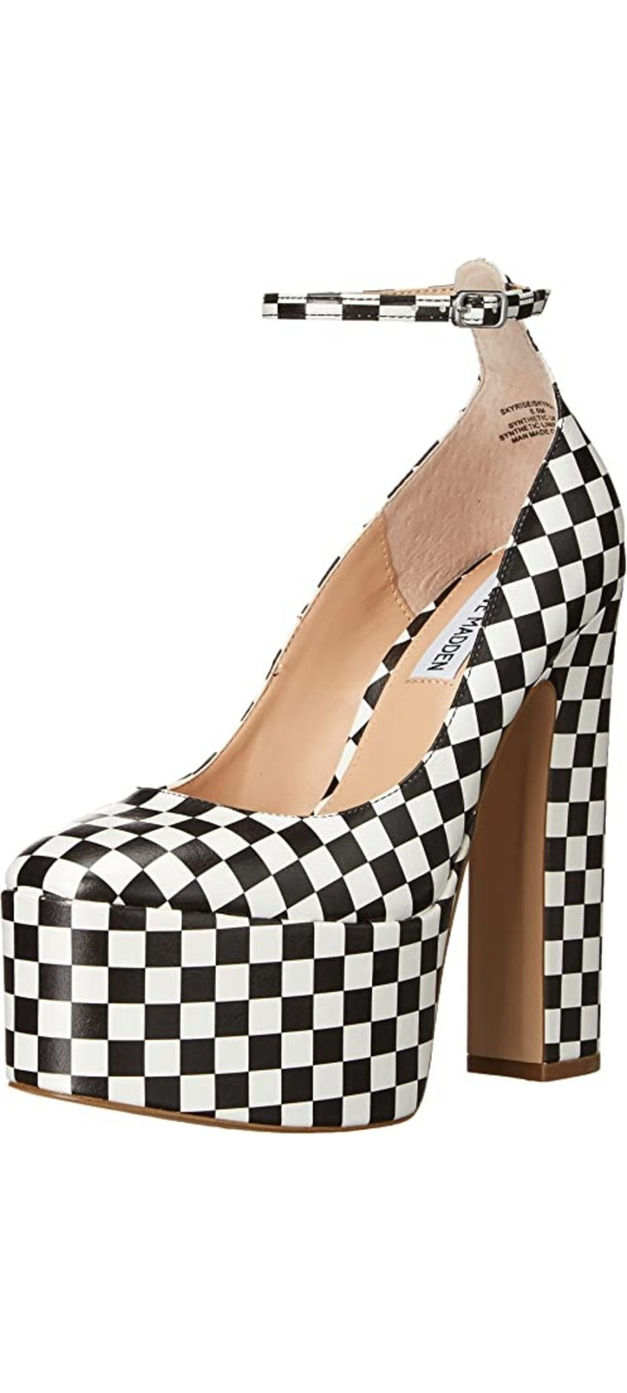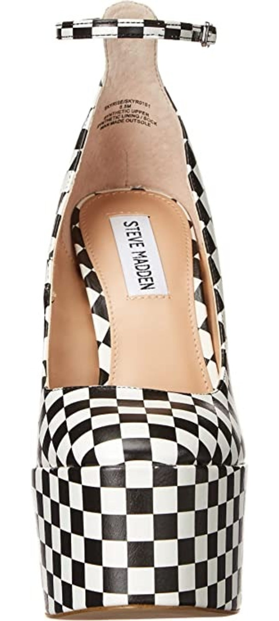 Steve Madden Skyrise Black/White Block Heel Almond Toe Ankle Strap Fashion Pumps
