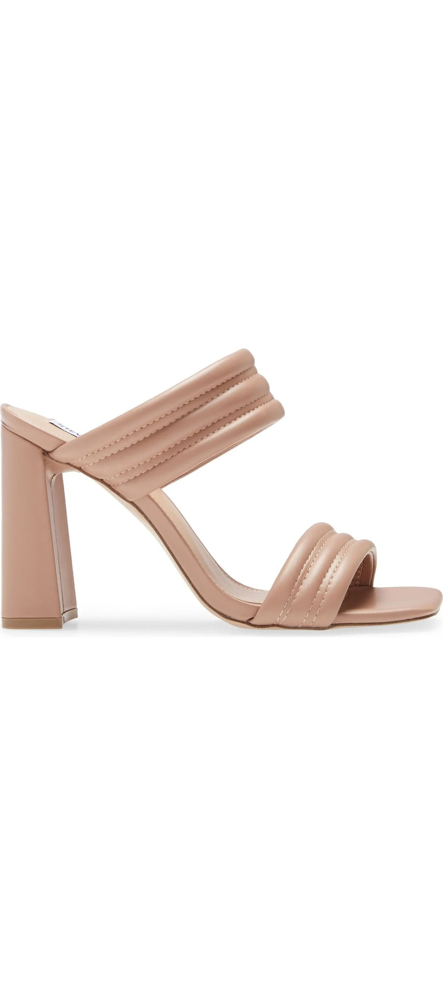 Steve Madden Tahani Nude Trapunto Strap Square Toe Dress Mules Slide Sandals