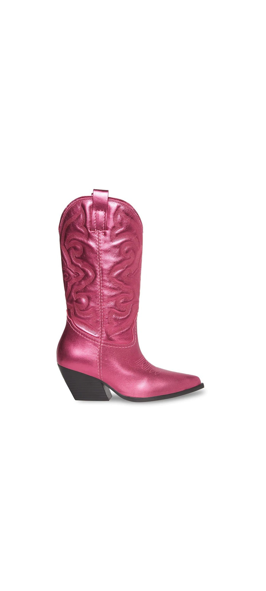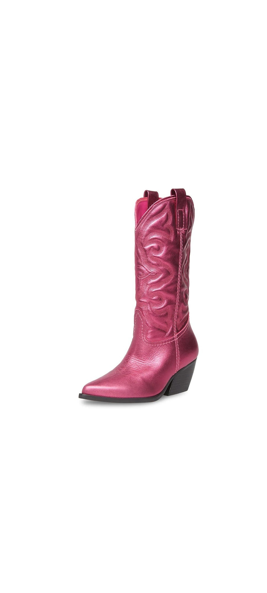 Steve Madden West Pink Metallic Pull On Pointed Toe Block Heel Western Boots