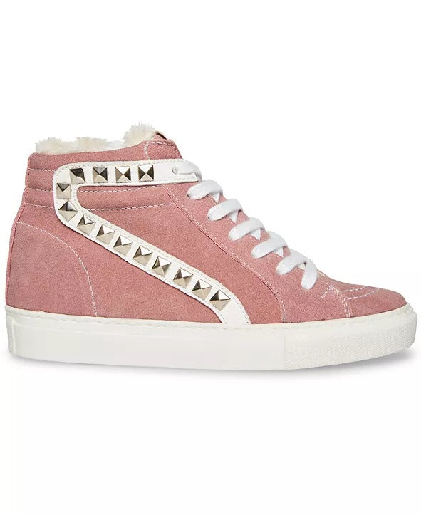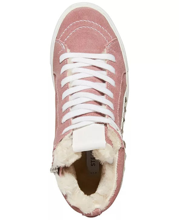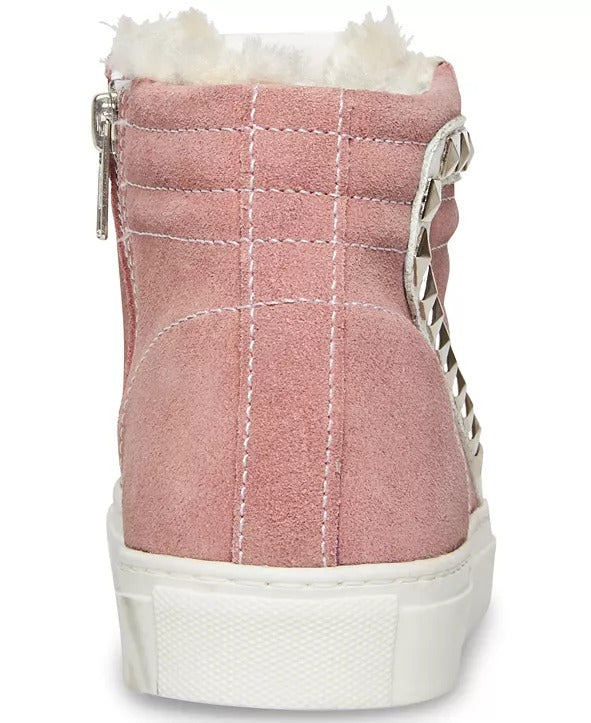 Steve Madden Women's Tracey Fur Mauve Suede High-Top Studded Lace Up Sneakers