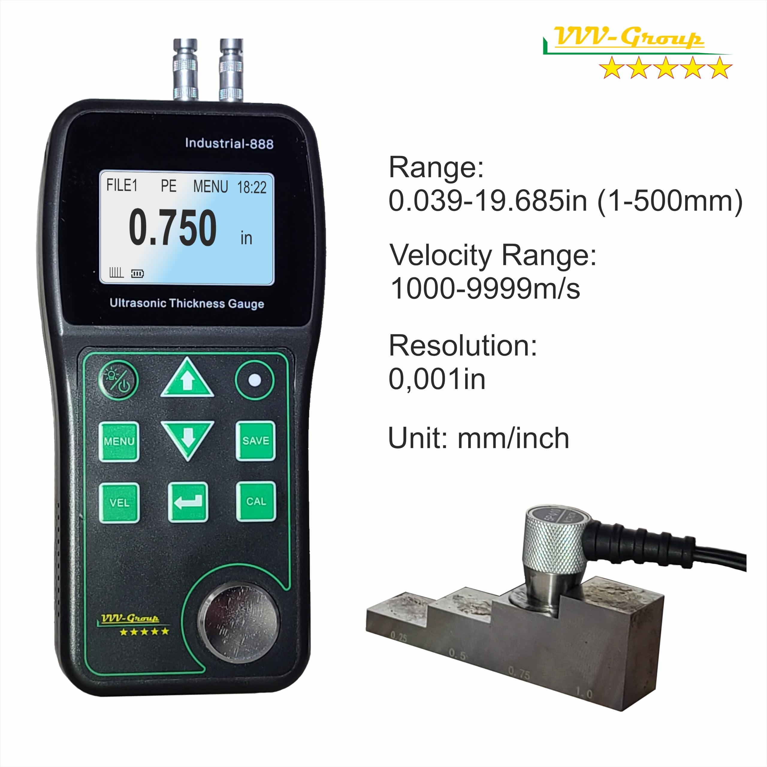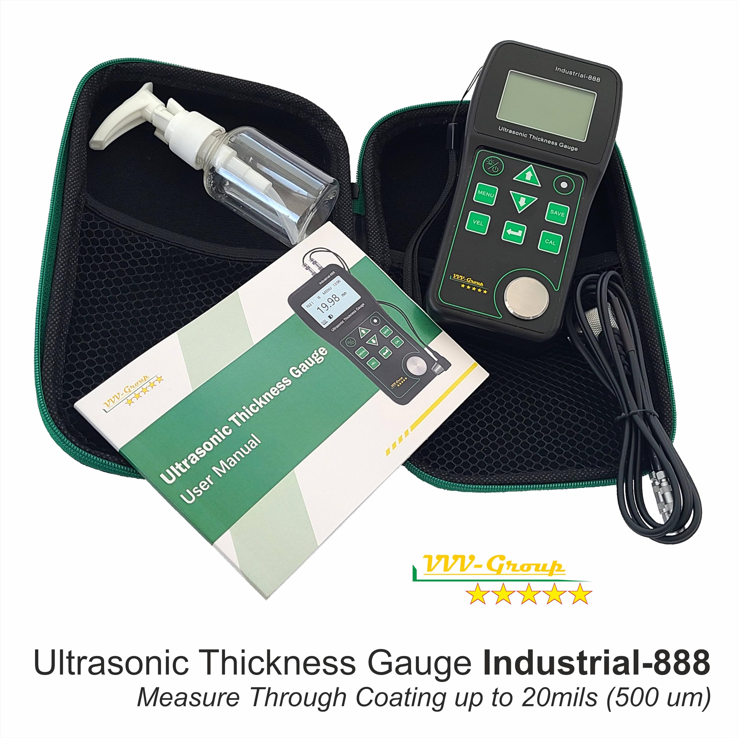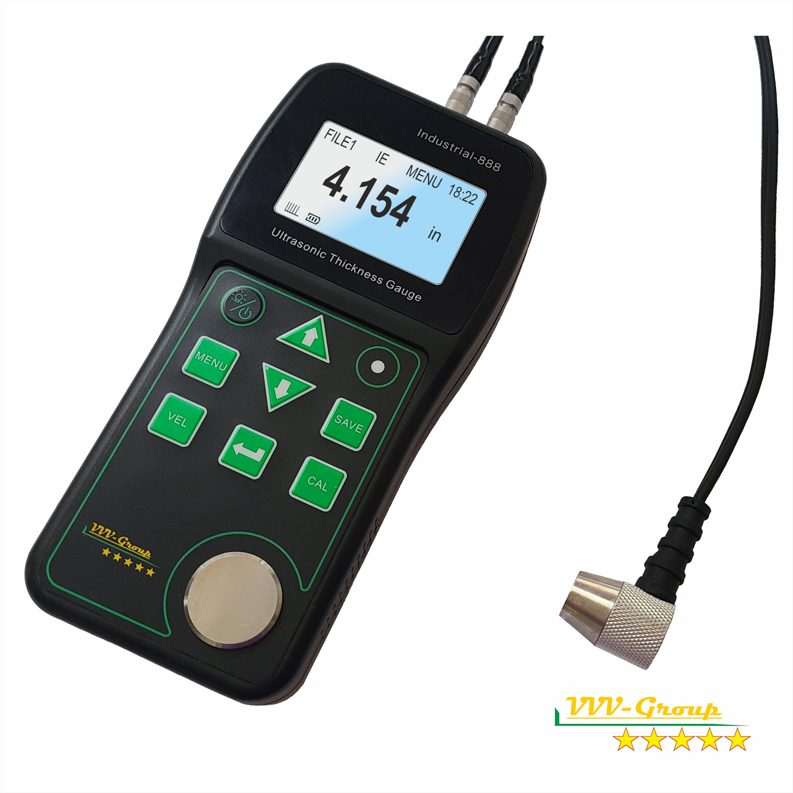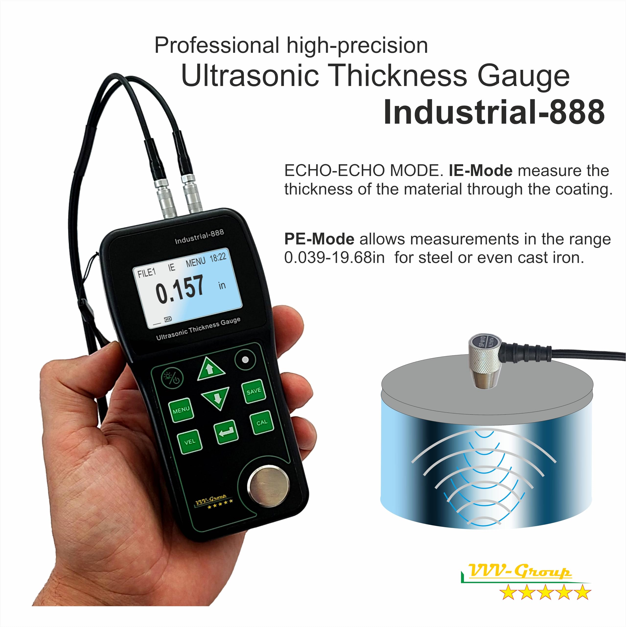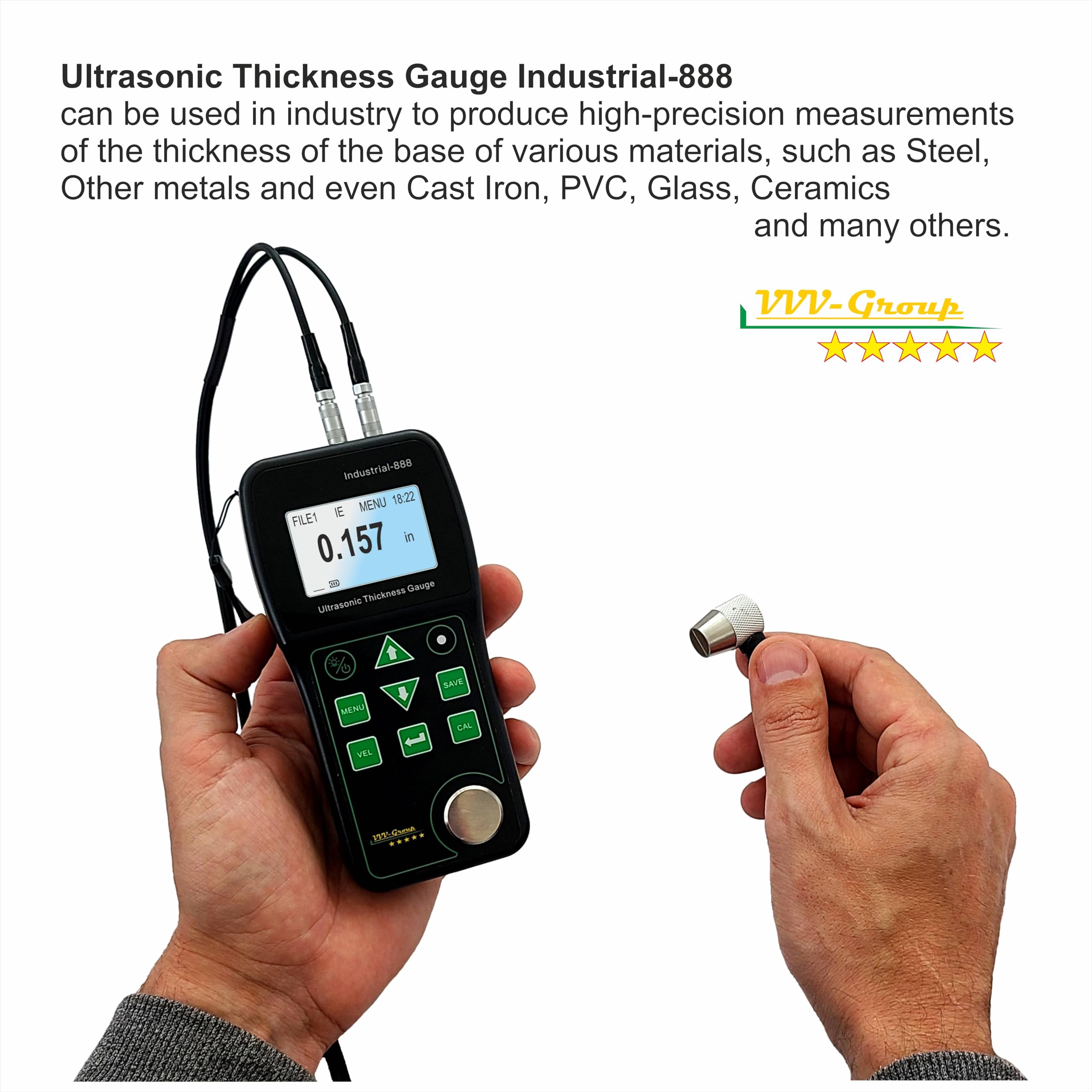 Thickness gauge Industrial-888 has a significantly higher accuracy compared to other ultrasonic thickness gauges and can be used in industry to produce high-precision measurements of the thickness of the base of various materials, such as Steel, Other metals and even Cast Iron, PVC, Glass, Ceramics and many others.