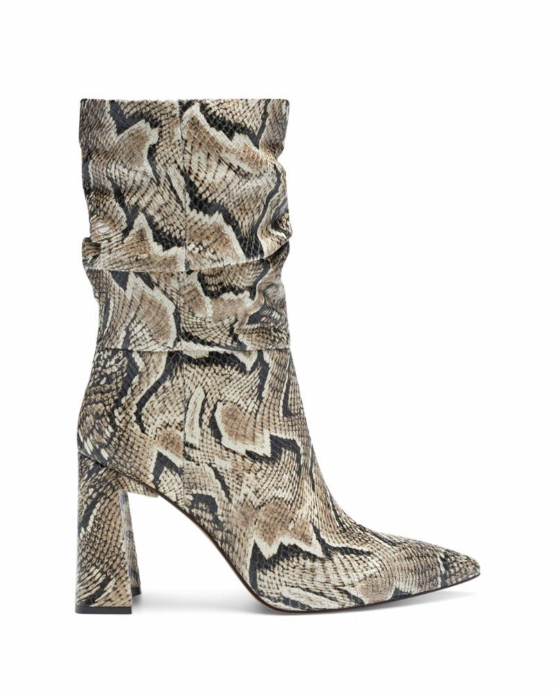 Vince Camuto Ambie Multi Snake Pointed Toe Mid Shaft Slouch Block Heel Booties