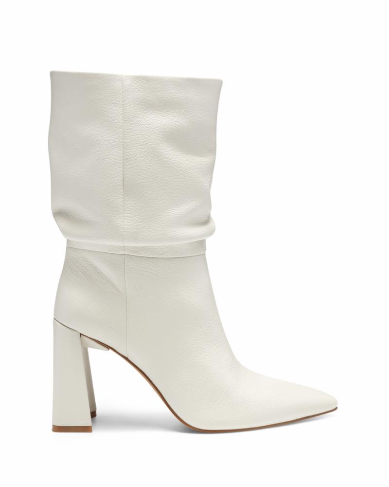 Vince Camuto AMBIE Slouch Pointed Toe Boot FLUFF White Block Heel Booties