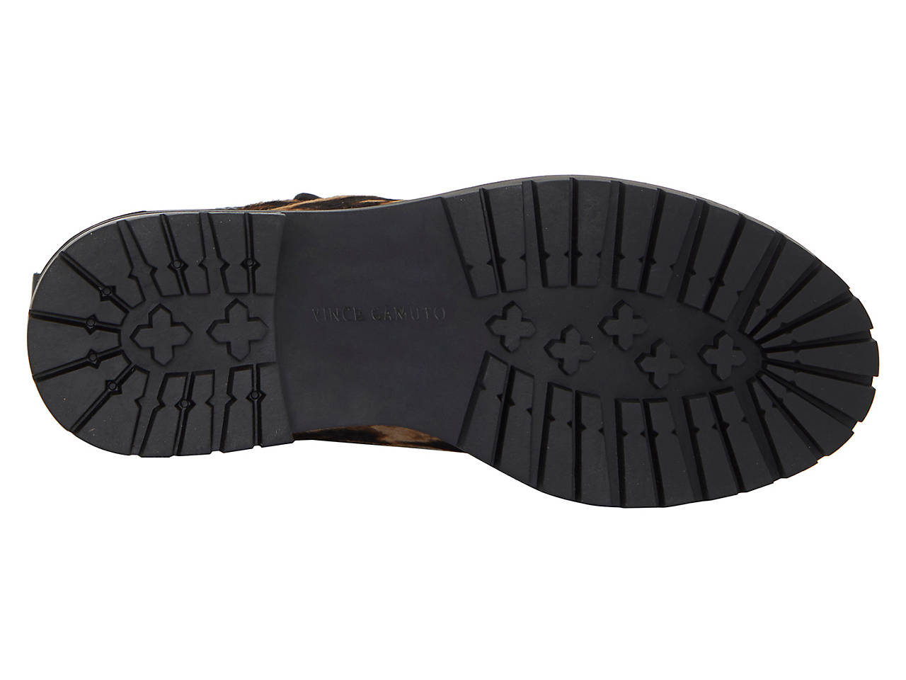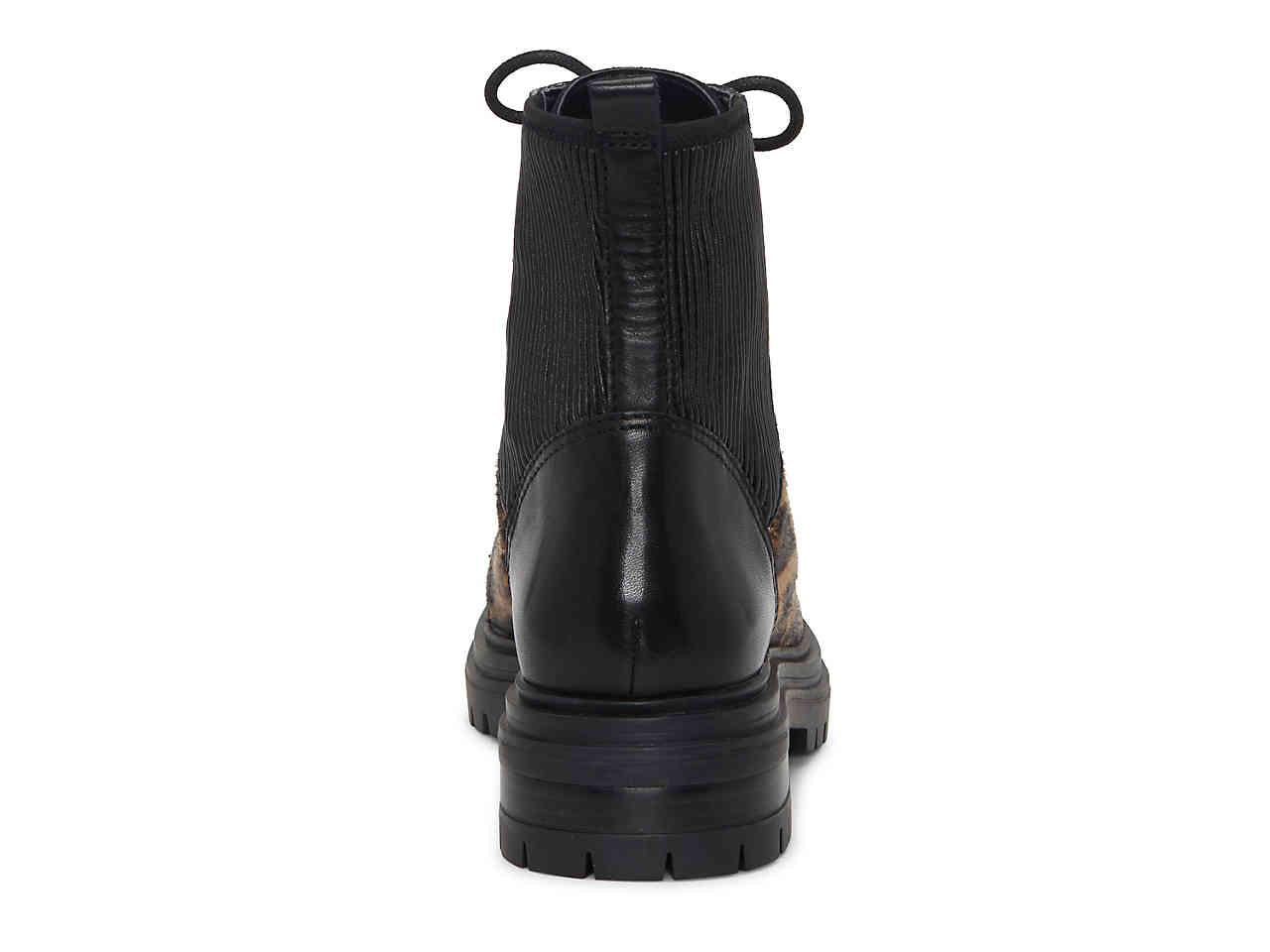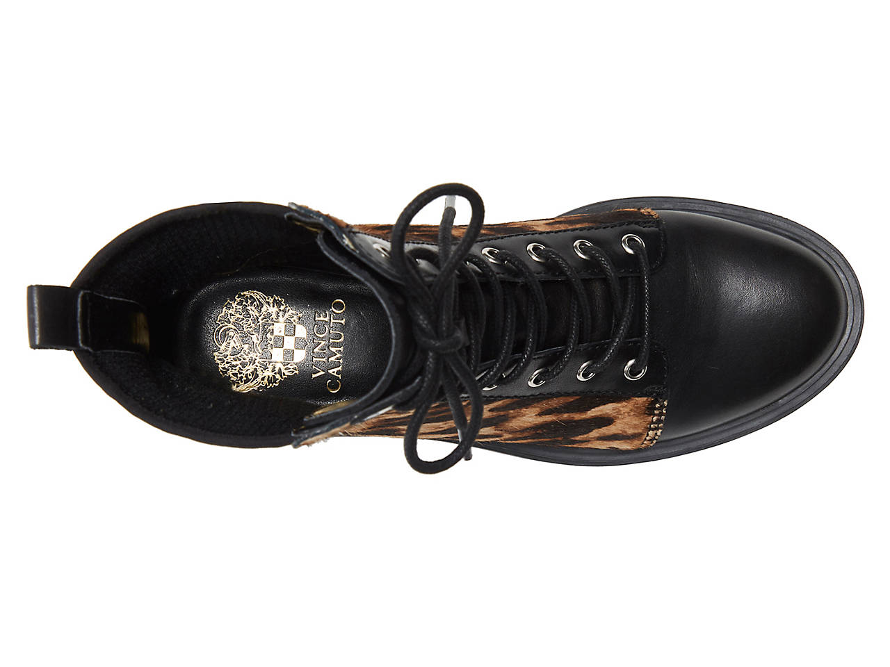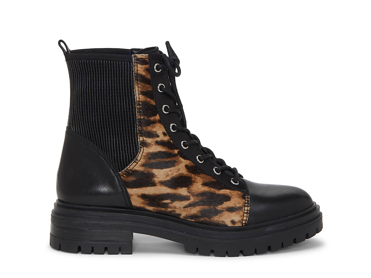 Vince Camuto Bestenda Black Leopard Leather Lace Up Moto Lug Sole Combat Boots