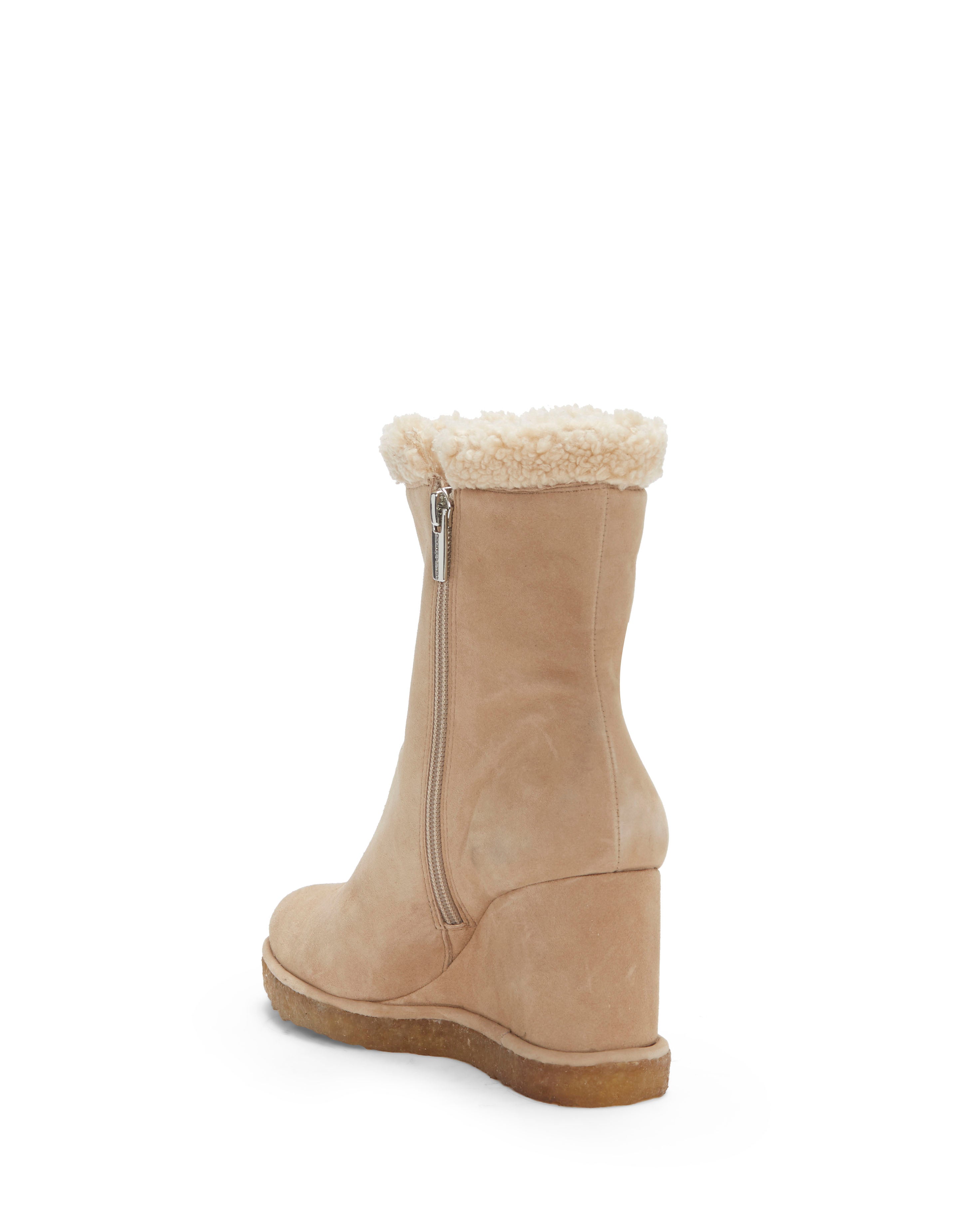 Vince Camuto Bevvisa Tortilla Natural Nude Fur Lined Wedge Heeled Ankle Booties