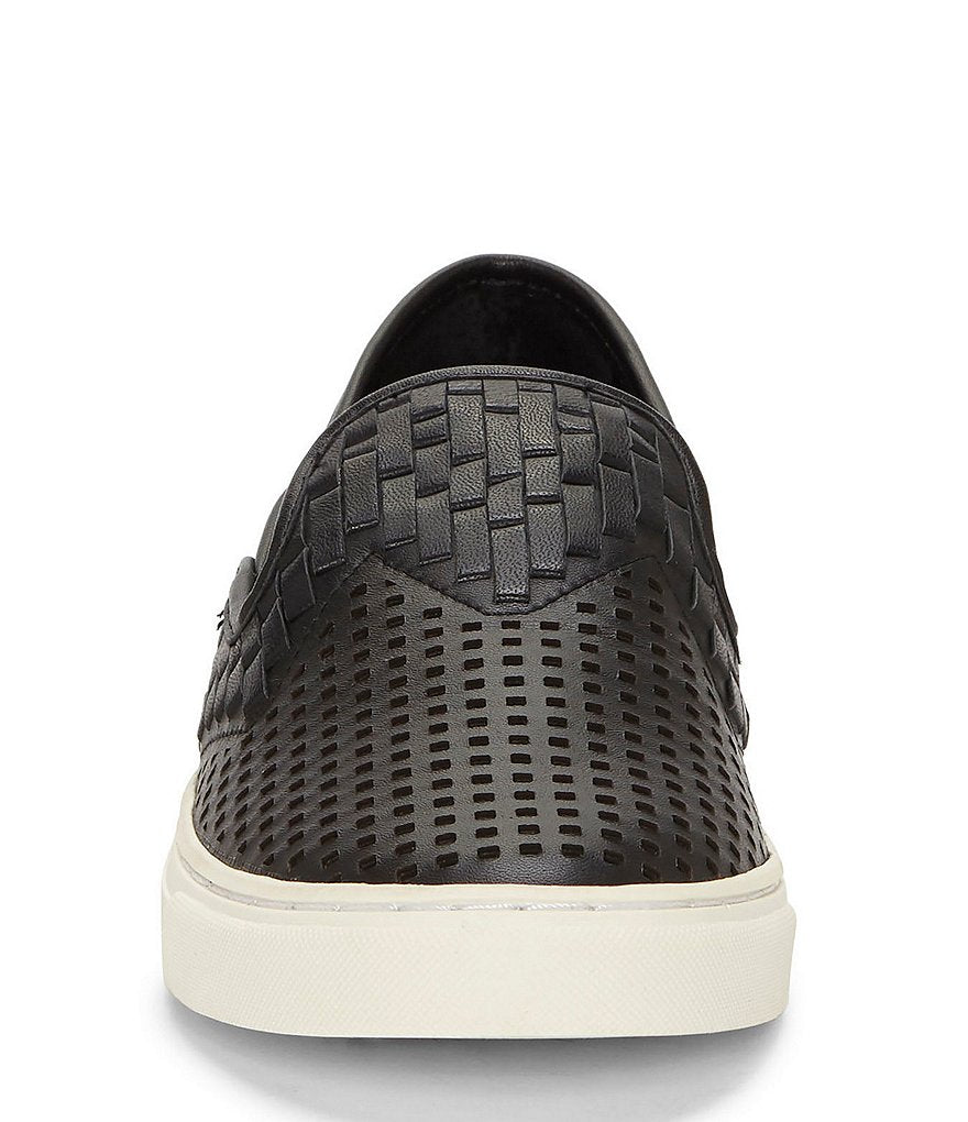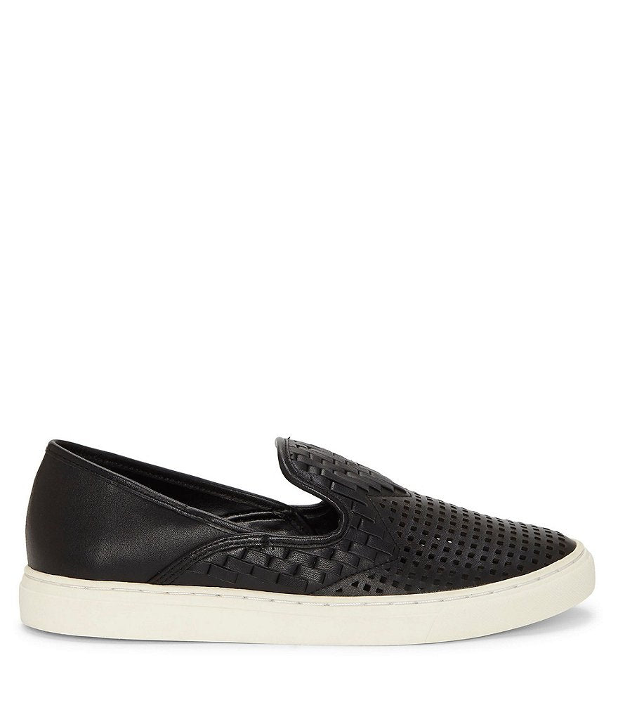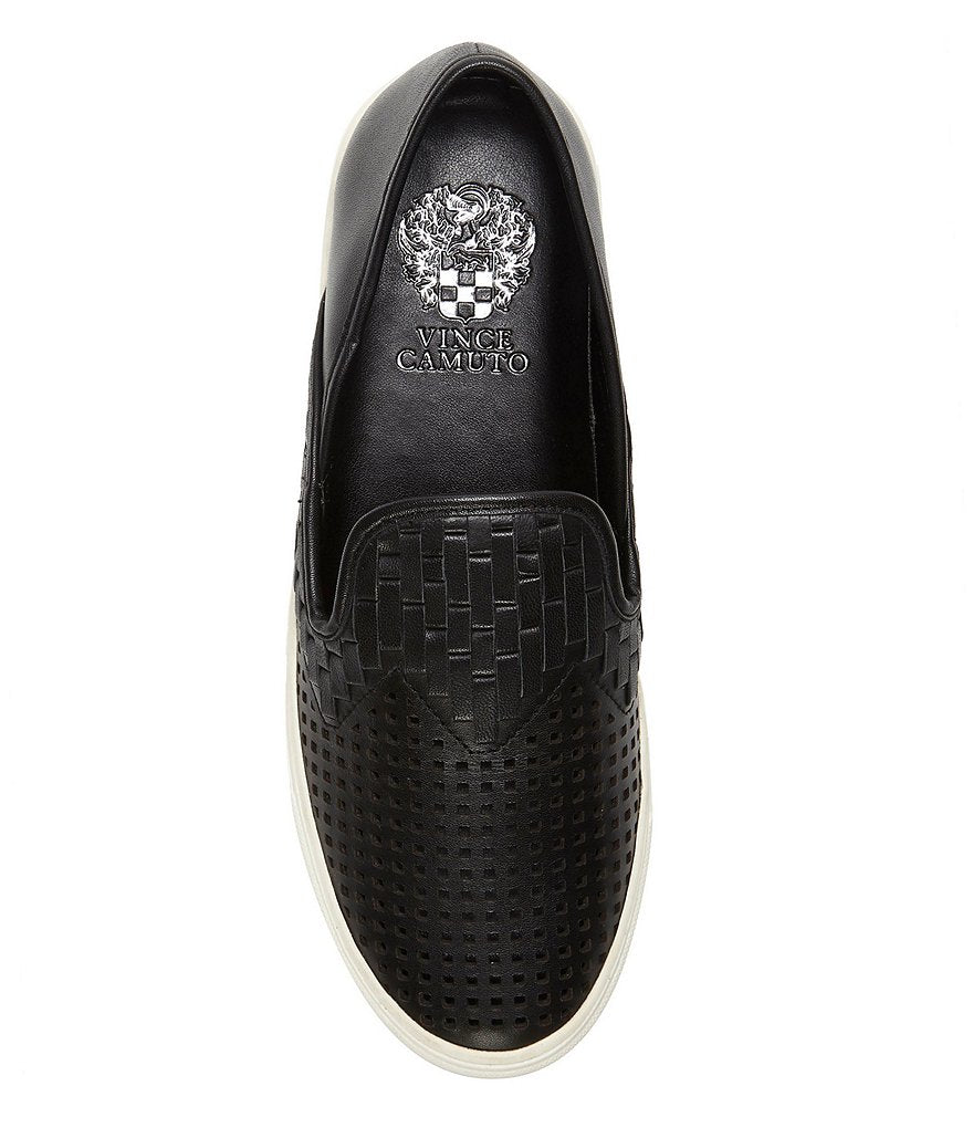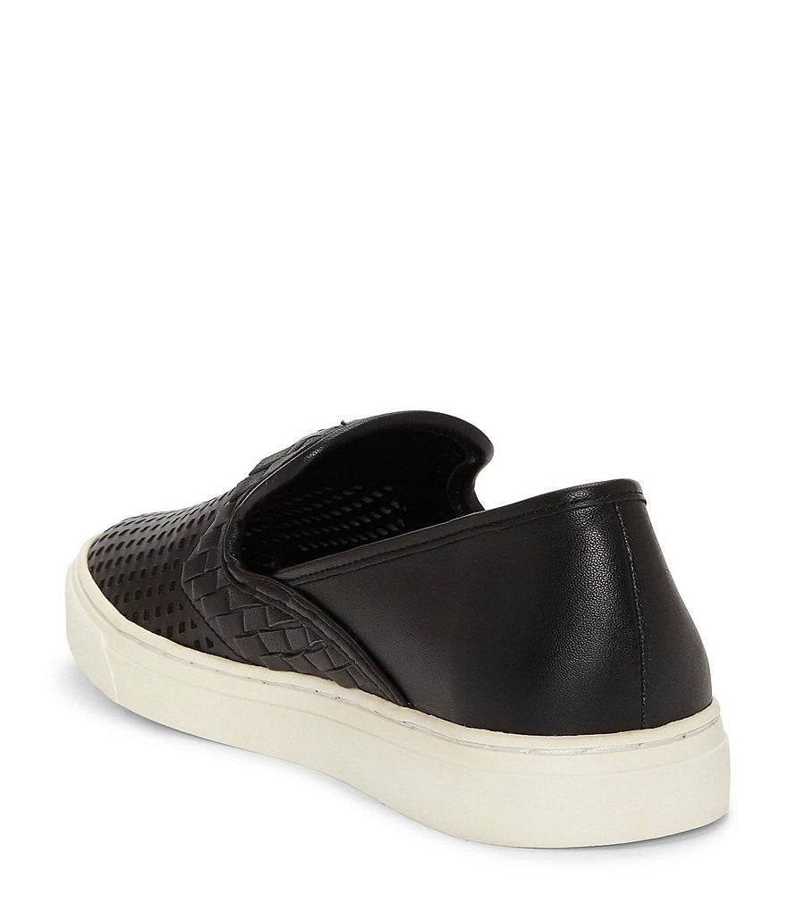 Vince Camuto Bristie Black Leather Woven White Sole Sneakers