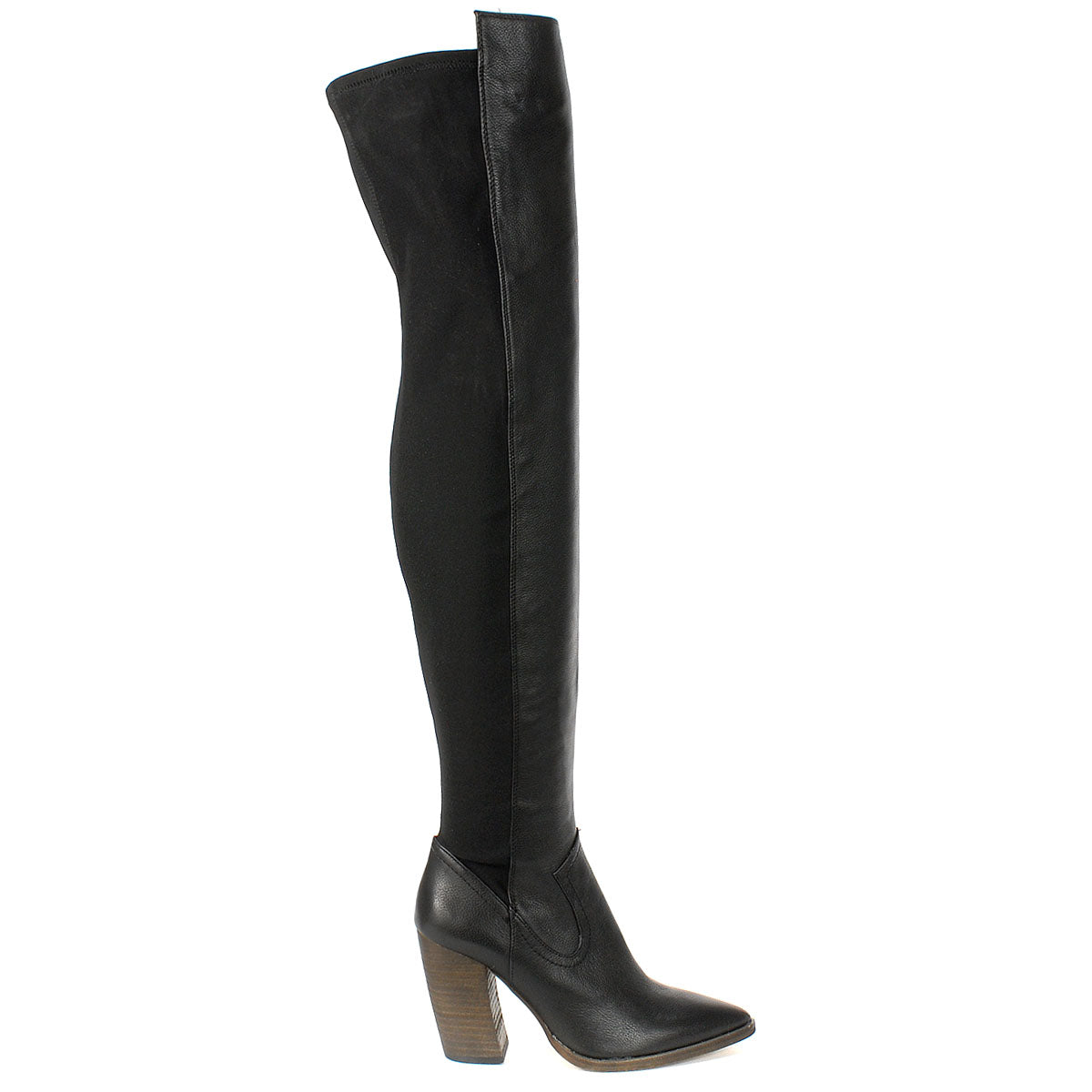 Vince Camuto Cottara Black Leather Fitted Pointed Over The knee Thigh High Boots