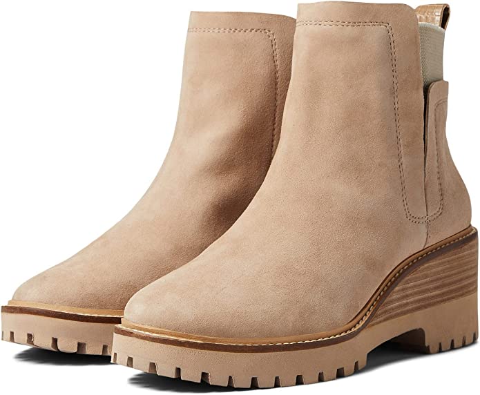 Vince Camuto Dendra Truffle Taupe Suede Wedge Gore Bootie Ankle Heeled Boot