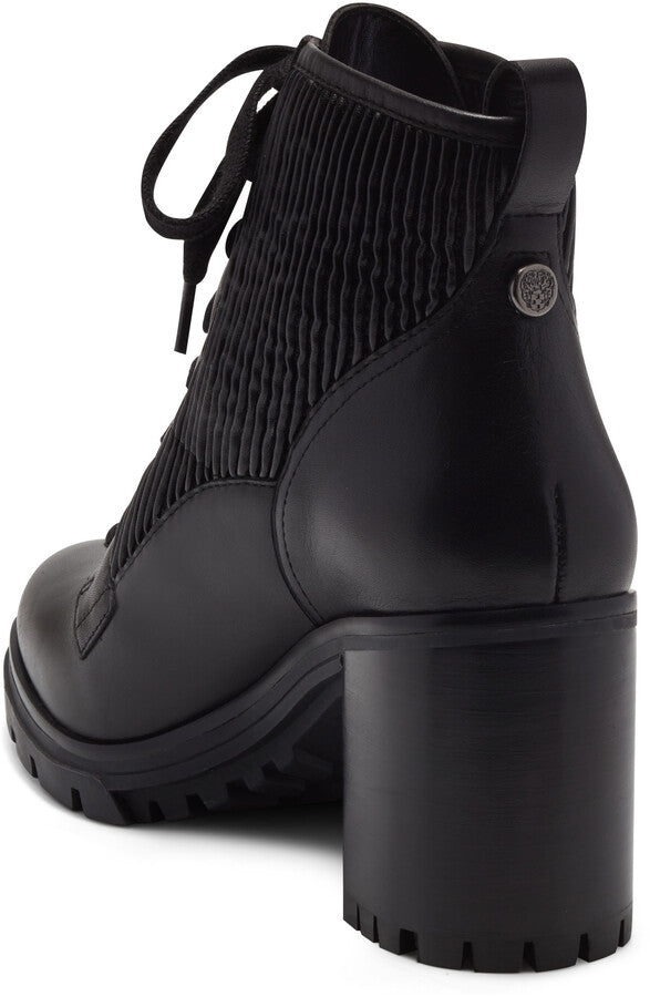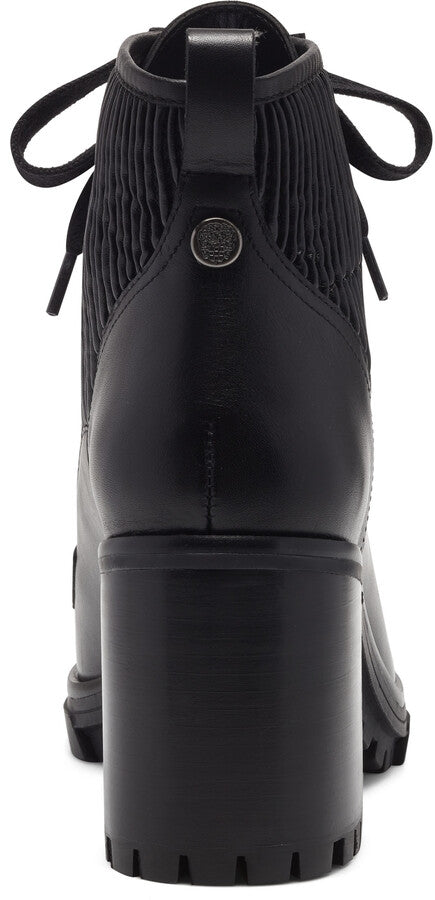 Cute off-duty style starts with this elevated hiking boot. Crafted of leather or suede with texture-rich ribbed accents, this trend-right bootie is lifted by a block heel and finished with a walkable tread sole. A pull tab with logo stud adds a finishing detail to the lace-up style.