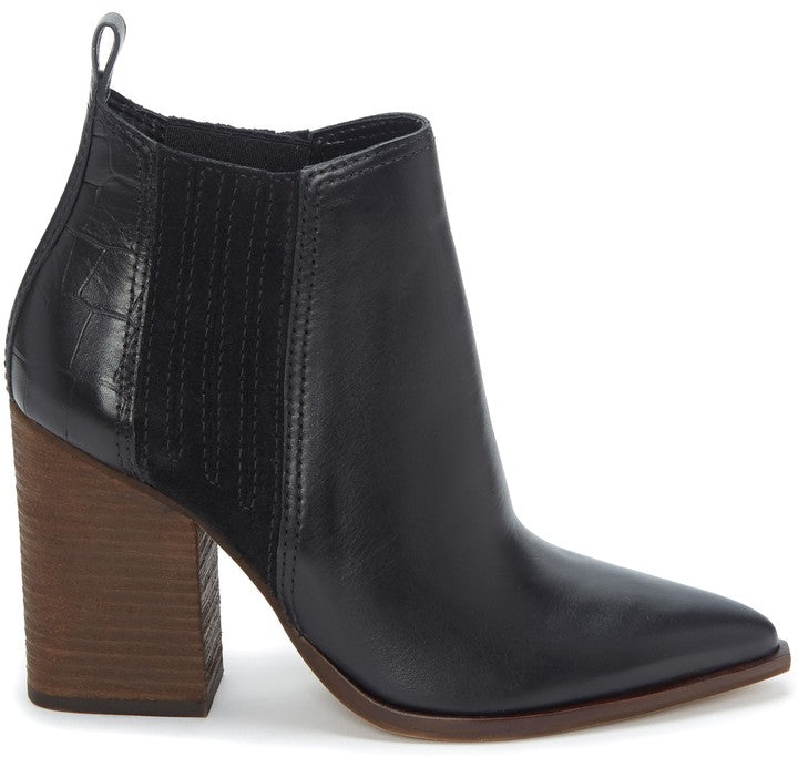 Vince Camuto Gabeena Black Leather Block Heel Pointed Chelsea Ankle Booties