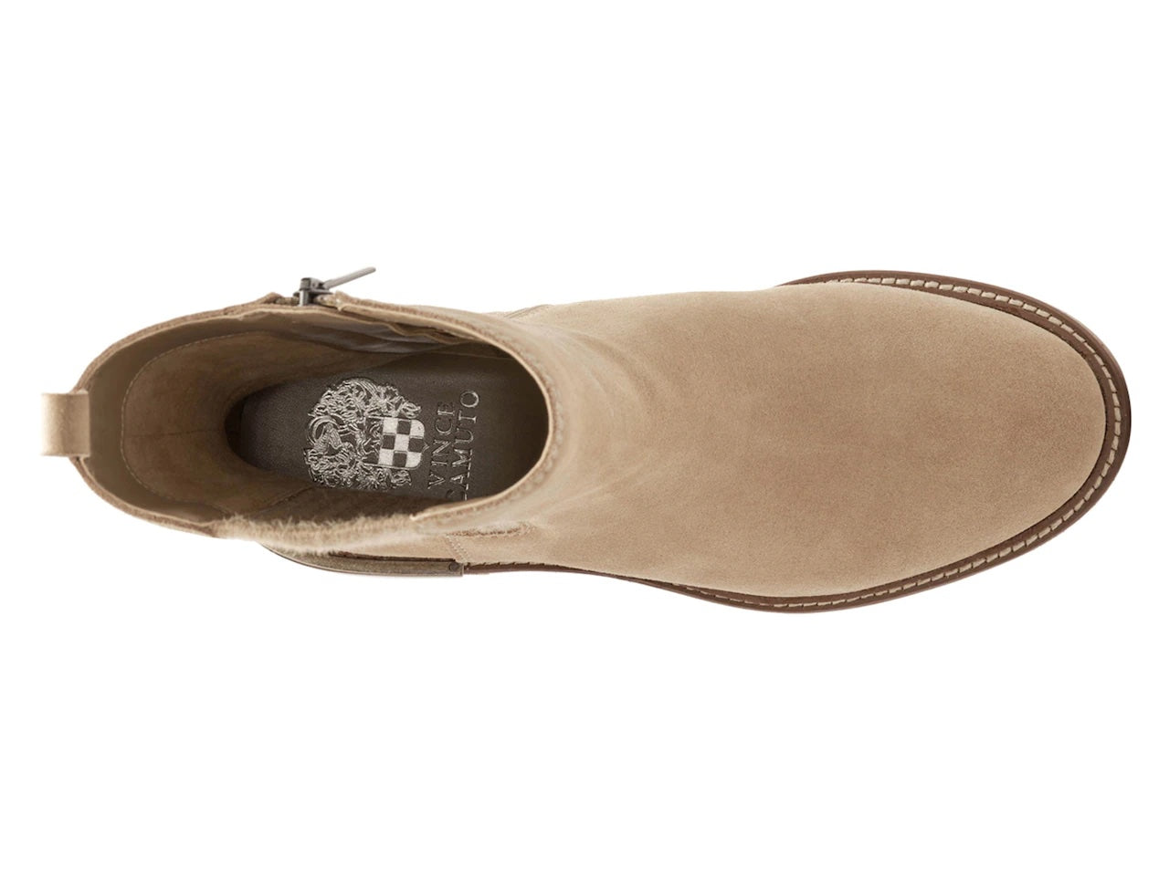 Vince Camuto Kourtly Tortilla Taupe Suede Lug Sole Chelsea Block Heel Flat Boot