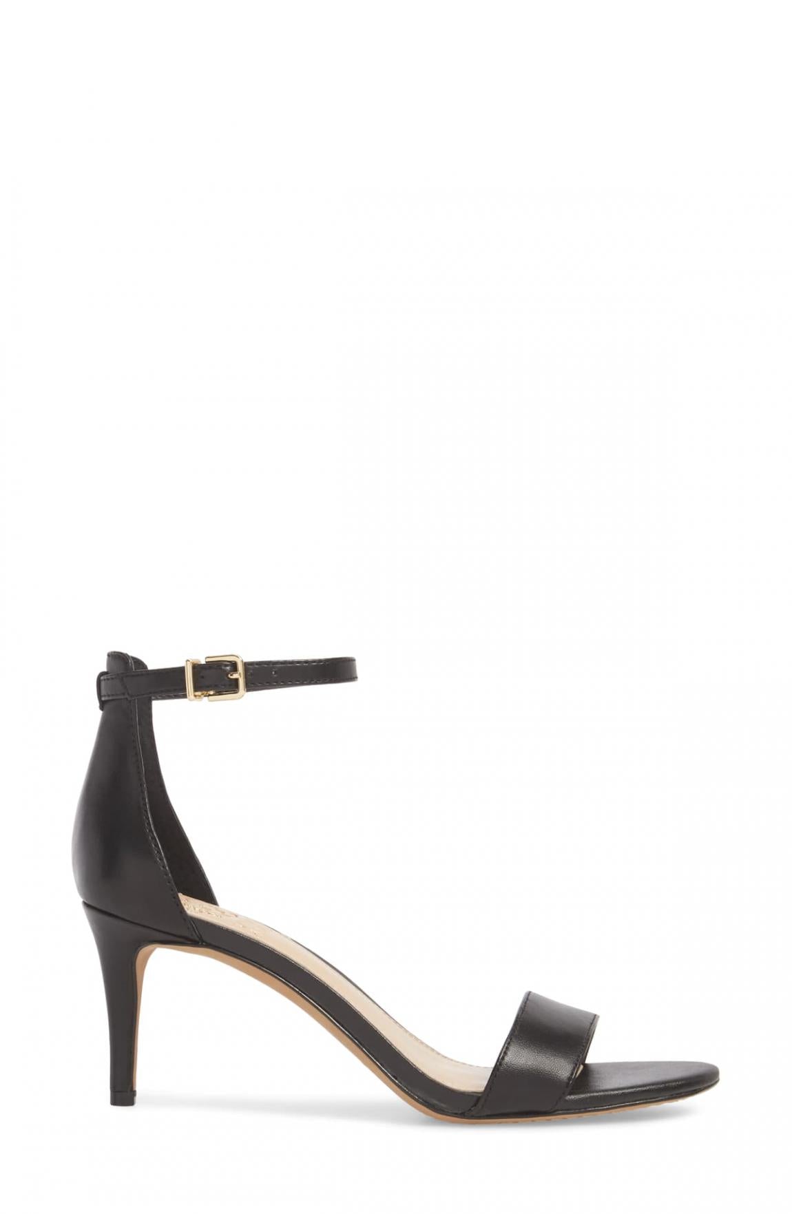 Vince Camuto Sebatani Black Leather Fashion Ankle Strap Open Toe Two Piece Pumps